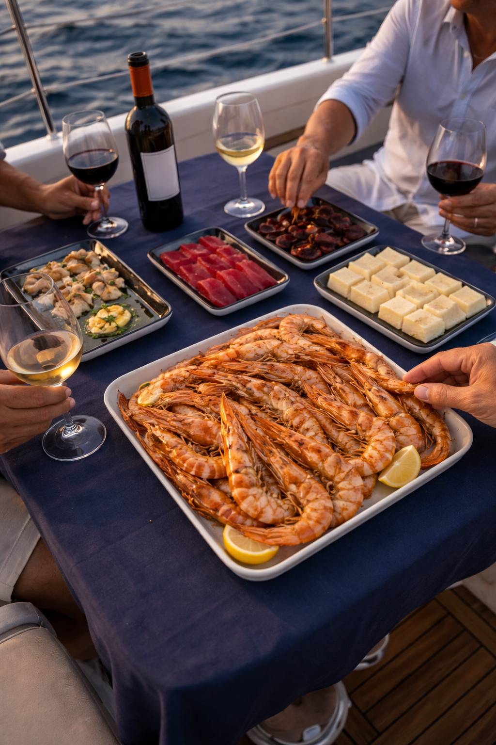 A bordo, disfrutarás del ritmo tranquilo del mar mientras degustas una cuidada selección de productos, en un ambiente relajado y sin prisas.